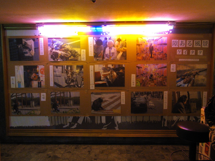 新世界市場のいちばギャラリーで自身の写真展の店番をする。